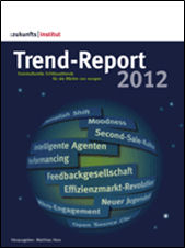 Der Trend-Report, Evergreen des Zukunftsinstituts, zeigt regelmäßig die interessantesten, soziokulturellen Trends auf, die Gesellschaft, Kultur und Wirtschaft von morgen prägen werden. Versehen mit zahlreichen Fakten und Praxisbeispielen liefert der Trend-Report 2012 in zehn aktuellen Trends ein gesellschaftspolitisches Stimmungsbild sowie einen Ausblick auf sich entwickelnde Märkte. Das Autorenteam des Zukunftsinstituts liefert Antworten, regt zum Nachdenken an und ordnet so manche Kuriosität in einen übergeordneten gesellschaftlichen Kontext ein. Wir befinden uns, laut Autorenteam, am Beginn des Zeitalters der Maschinenintelligenz.