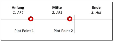 Dabei kann man sehr viel von Hollywood Filmen lernen. Sie lehren uns eine Dramaturgie, die beim Publikum Spannung und Betroffenheit erzeugt. Warum also nicht bei der Konzeption eines Seminars Anleihen beim Hollywood Drehbuch nehmen? Nehmen wir z.B. die Drehbuch-Theorie des US-amerikanischen Gurus Syd Field. Er gliedert eine Filmhandlung in drei Akte: Exposition und Anfang, Konfrontation, Auflösung und Ende. Diese Struktur entspricht mehr oder weniger dem Aufbau eines traditionellen Seminars und bringt noch keine entscheidend neuen Aspekte. Spannend für Trainer sind eher Syd Fields Überlegungen zur Einführung von Plot Points. Plot Points sind Wendepunkte in der Handlung: es passiert etwas anderes als das, womit man beim bisherigen Gang der Handlung gerechnet hat. Im klassischen Hollywood Film gibt es vor allem zwei Plot Points, das Grundmuster der dramatischen Struktur nach Syd Field sieht folgendermaßen aus:
