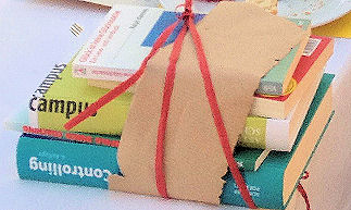 Wir hatten ja bei der Einladung schon angekündigt, dass jeder Teilnehmer ein kostbares Buchpaket als Geschenk bekommen sollte. unter Anleitung von Sabine Kuhlmann (danke für die schöne Idee, Sabine) hatte das OrgaTeam für jeden Teilnehmer ein Buchpaket ansprechend verpackt. Natürlich konnten wir nicht wissen, wen welches Buch interessieren würde. So nutzen viele die "Tausch-Bar", um sich diejenigen Titel auszuwählen, die für einen passend waren. Ich denke, so kam jeder am Schluss nicht nur zu einem wertvollen Buchpaket, sondern hatte darin auch die Titel, die ihn selbst besonders interessierten.