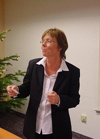 Jutta Häuser gründete 1988 die erste Trainervermittlungsagentur am Markt. Als Geschäftsführende Gesellschafterin steht sie für das Unternehmen YPSYLON und die damit verbundene Aufgabe, Unternehmen erstklassige Trainer zu empfehlen. Ihr neues Buch Kein Profi(t) ohne Profil - Marketing für Trainer erschien im Herbst dieses Jahres. Im ersten Teil des Abends zeigte sie auf, was Trainer aus ihrer Sicht benötigen, um sich erfolgreich am Markt zu platzieren. Der Bauchladentrainer, sympathisch und beziehungsstark, aber thematisch über die gesamte Themenbandbreite ausgerichtet, ist out. Gefragt sind mehr und mehr die Spezialisten. Entscheidend für erfolgreiches Marketing ist die Entwicklung des eigenen Profils. Vielen Trainern gelingt es nicht, klar auf den Punkt zu bringen, worin sie wirklich gut sind. Unterstützt wurden diese Thesen durch einige typische Beispiele, die deutlich machten worum es geht.