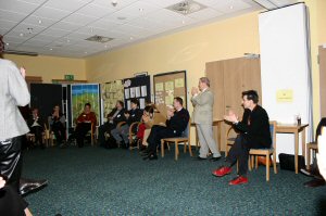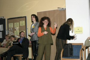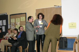 Zum Schluß wurde dann - in kleinerer Runde, da einige Teilnehmer nach Hause mussten - noch einmal über den Einsatz der gezeigten Übungen reflektiert. Dr. Klapps informierte auch über ihre positiven Erfahrungen damit im Führungskräftetraining. Und schließlich gab es wieder etwas bei der obligatorischen Verlosung zu gewinnen.