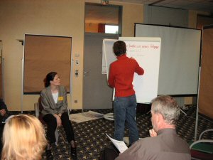 In drei Arbeitsgruppen wurden folgende Fragestellungen miteinander diskutiert. Es passierte dass, was wir inzwischen aus den Trainer-Werkstätten der letzten Jahre kennen: die Teilnehmer brachten sich intensiv selbst ein und es kam zu einem sehr regen Gedanken- und Erfahrungsaustausch.