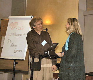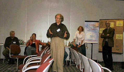 Unser Referent Dr. Achim Goeres aus Berlin hat einen interessanten Lebensweg als Astrophysiker, Profimusiker, Trainer, Berater und Therapeut für Prozessarbeit nach Mindell vorzuweisen. Mit seiner herzlichen und sehr authentischen Art verstand er es schnell, die Teilnehmer in seine Präsentation mit einzubeziehen.