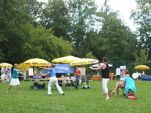 Wer den Weg zum Sommerfest fand, hatte wirkliches Interesse. Dementsprechend gut besucht waren auch die 24 Vorträge der über 30 Aussteller aus dem Bereich Weiterbildung, Industrie und Dienstleistung. Das Spektrum reichte von Gesundheitsthemen, Profiakquise, gewaltfreie Kommunikation über Mentaltraining, Wohlbefinden durch Geld bis zu Tipps zum Netzwerken und Selbstmotivation.