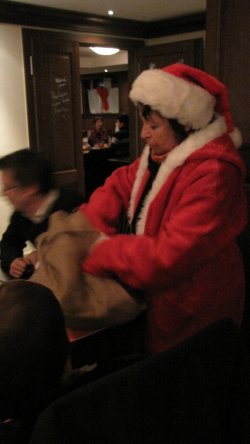 Zwischendurch hatten wir noch Besuch vom Nikolaus. Dieser, also sie, heißt Zamyat M. Klein. Trainerin, Autorin verschiedener Bücher zum Thema Kreativität (www.zamyat-seminare.de) watr Knecht Ruprecht und und Nikoläusin in einer Person. Wie es sich gehört fragte sie die Teinehmer/innen, ob den auch alle schön brav waren. Zur Belohnung gab es dann für alle eine Weichnachtstüte mit Nüssen, Lebkuchen, Mandarinchen und einem kleinen Schokonikolaus.
