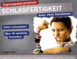 In der Expressbroschüre (15 Seiten) richtet Kenzelmann den Focus auf die Themen "Was ist Schlagfertigkeit?", "Drei Bereiche der Schlagfertigkeit", "Körpersprache und Schlagfertigkeit", "DIE Grundtechnik für Schlagfertigkeit" und bietet Raum für eine eigene Stärken-/Schwächen-Analyse. Kurz und knackig auf den Punkt gebracht steckt hier bereits viel Hilfreiches drin.