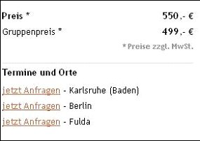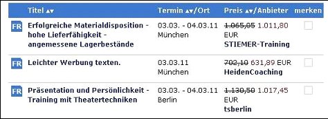 Beispiel aus der Online- Plattform seminarmarkt.de