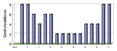 Das Vitalblut aus der Fingerbeere von gesunden Probanden wurde in einer Basisuntersuchung mittels dunkelfeldmikroskopischer Untersuchung differenziert nach dem Auftreten und der Länge von Geldrollen beurteilt. 17 Probanden wurden von der Untersuchung ausgeschlossen, da sich bereits in der Ausgangssituation ein Maß an Geldrollenbildung zeigte, welches eine signifikante Vermehrung nicht mehr erwarten ließ.