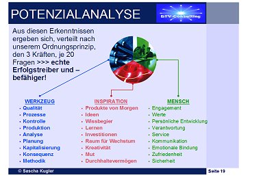 Aus den Erkenntnissen der Analyse ergeben sich - verteilt nach dem Ordnungsprinzip der 3 Kräfte - die echten Erfolgstreiber und Erfolgsbefähiger.