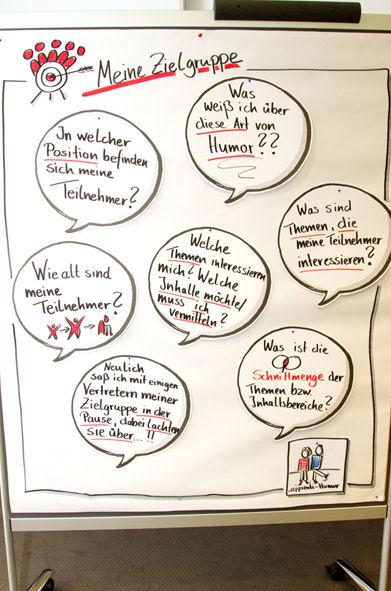 Sie werden jetzt sagen: „Ja, ist doch klar, ich muss meine Zielgruppe analysieren. Das habe ich doch schon längst bei der Auftragsklärung!“ – Ganz sicher haben Sie die Zielgruppe grundsätzlich im Blick. Aber für den Einsatz von Humor müssen Sie noch etwas mehr von der Zielgruppe wissen, dabei sollten Sie die folgenden Fragen nutzen: