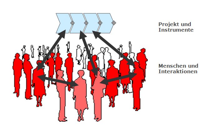 Wir meinen, dass dieser Begriff, dieses Ziel, sowohl für Einzel-Projekte als auch für eine Multi-Projekt-Landschaft tragfähig ist. Wir empfehlen grundsätzlich eine sowohl lebenspraktische als auch fundiert kommunikationsorientierte Betrachtung. Manchen theoretischen / wissenschaftlichen Abhandlungen stehen wir eher distanziert und kritisch gegenüber, aber auch manchen allzu pragmatischen Bestrebungen. Beispiele dafür sind stark mechanistische Ansätze aus der konservativen Organisationstheorie oder teilweise manipulativ anmutende Denkhaltungen in der Organisationspsychologie.