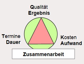 Immer wenn wir es mit hoher Komplexität zu tun haben, nutzen wir Ordnungsmodelle zur Sichtung und Bewältigung der Vielfalt. Im Projektmanagement gehört dazu sicher das „magische Dreieck“ („K-Q-T“): Kosten, Qualität und Termine bedingen sich gegenseitig. Oft genug wird gegen die hier erforderliche Ausgewogenheit schon grob verstoßen. Wir legen Ihnen dringend nahe, dieses magische Dreieck noch zu erweitern: