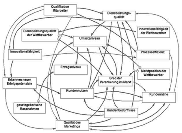 Charakteristisch für komplexe Systeme wie Unternehmen oder Umwelt ist, dass sie aus vielen verschiedenen Einflussgrößen bestehen, die untereinander stark vernetzt sind. Die wechselseitigen Beziehungen ändern sich ständig. Diese mit der Komplexität verbundene Dynamik mit ihren immer neuen Mustern und Konstellationen erschwert die Gestaltung und Lenkung eines Unternehmens. Die Herausforderung des Managements besteht darin, auf kaum durchschaubare in Wechselwirkung stehende, dynamische Problemsituationen so einzuwirken, dass die Erfolgspotenziale des Unternehmens genutzt werden können. Das gelingt nur den Unternehmen, die die zunehmende Komplexität managen können. Je höher die Komplexität eines Unternehmens ist, je stärker seine Vernetzung und Interaktivität sind, desto schwieriger ist es, das Unternehmen robust, funktionsfähig und sicher in die Zukunft zu steuern.