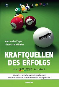 „Wenn Sie Ihre individuelle Persönlichkeit entwickeln möchten, erfolgreich, glücklich und gesund sein wollen, dann ist es unerlässlich, zuerst herauszufinden, was Sie im Innersten antreibt und was Sie überhaupt von Ihrem Leben erwarten. Erst das Wissen um die eigenen Motive versetzt Sie in die Lage, Ihr Potential voll auszuschöpfen. Zahlreiche Spitzensportler und Führungskräfte, aber auch Künstler und Existenzgründer nutzen hierzu das weltweit bewährte Reiss Profile nach Professor Steven Reiss.“ Alexander Reyss, einer der ersten und erfahrensten Reiss-Profile-Ausbilder in Deutschland und Inhaber des Step4ward-Instituts in Köln, und Thomas Birkhahn, NLP-Trainer und zertifizierter Reiss-Profile-Master, erläutern in ihrem Ratgeber „Kraftquellen des Erfolgs“, wie man dank Kenntnis der persönlichen Lebensmotive sein Leben erfolgreich gestalten und sein Potential voll ausschöpfen kann.