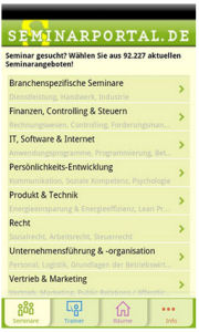 Ab sofort können mehr als 90.000 Veranstaltungen – aber auch Trainer und Tagungsräume – über die neue App von Seminarportal.de blitzschnell recherchiert werden. Natürlich kosten- und werbefrei!